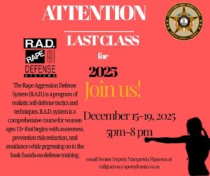 The Spotsylvania County Sheriff’s Office is proud to offer the Rape Aggression Defense (RAD) program — a nationally recognized self-defense course focused on awareness, prevention, risk reduction, and realistic hands-on training.